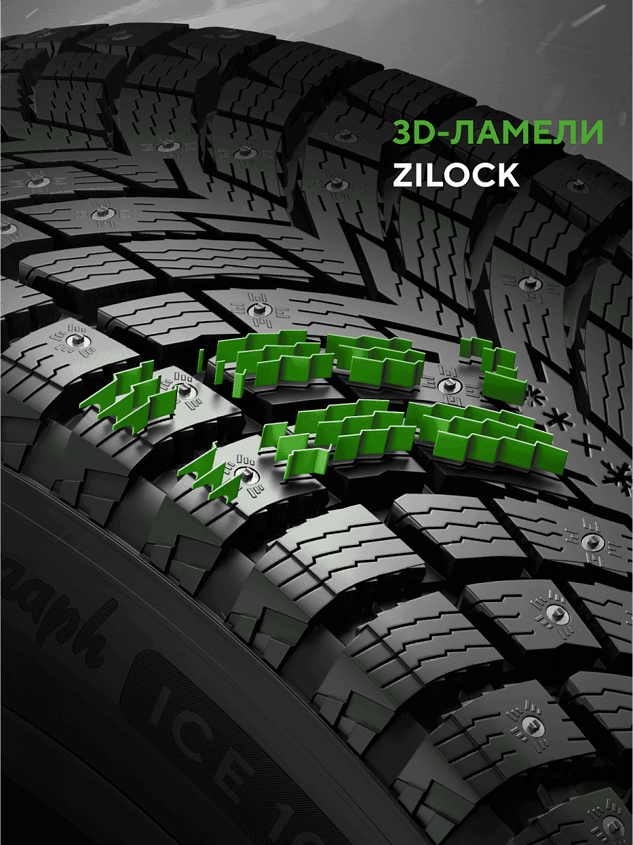 Предсказуемое торможение и стабильное управление достигается за счет двойной ошиповки DoubleBite и протектору с 3D-ламелями ZiLock. Благодаря специально разработанной резиновой смеси GC Mix управляемость сохраняется даже при низких температурах. Шипованные шины Ikon Autograph Ice 10 созданы для тех, кто ценит контроль и стабильность в зимних условиях. Прочная и надежная двойная ошиповка DoubleBite в сочетании с инновационной формой сердечника обеспечивают надежное сцепление как при разгоне и торможении, так и в поворотах на льду и снегу. Усиленная фиксация шипов значительно продлевает период эксплуатации шин. Качественные материалы повышают износостойкость шины и сохраняют надежное сцепление
